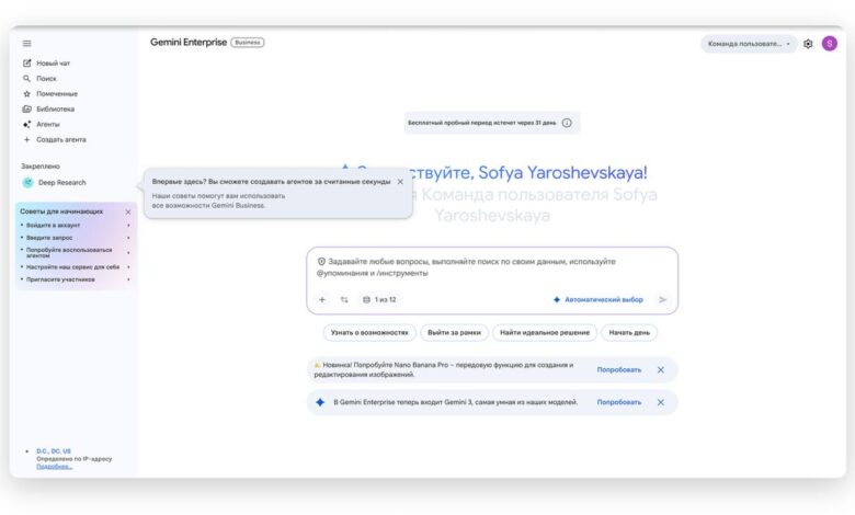 Бесплатный Бизнес Аккаунт в Gemini Enterprise вместо 21$